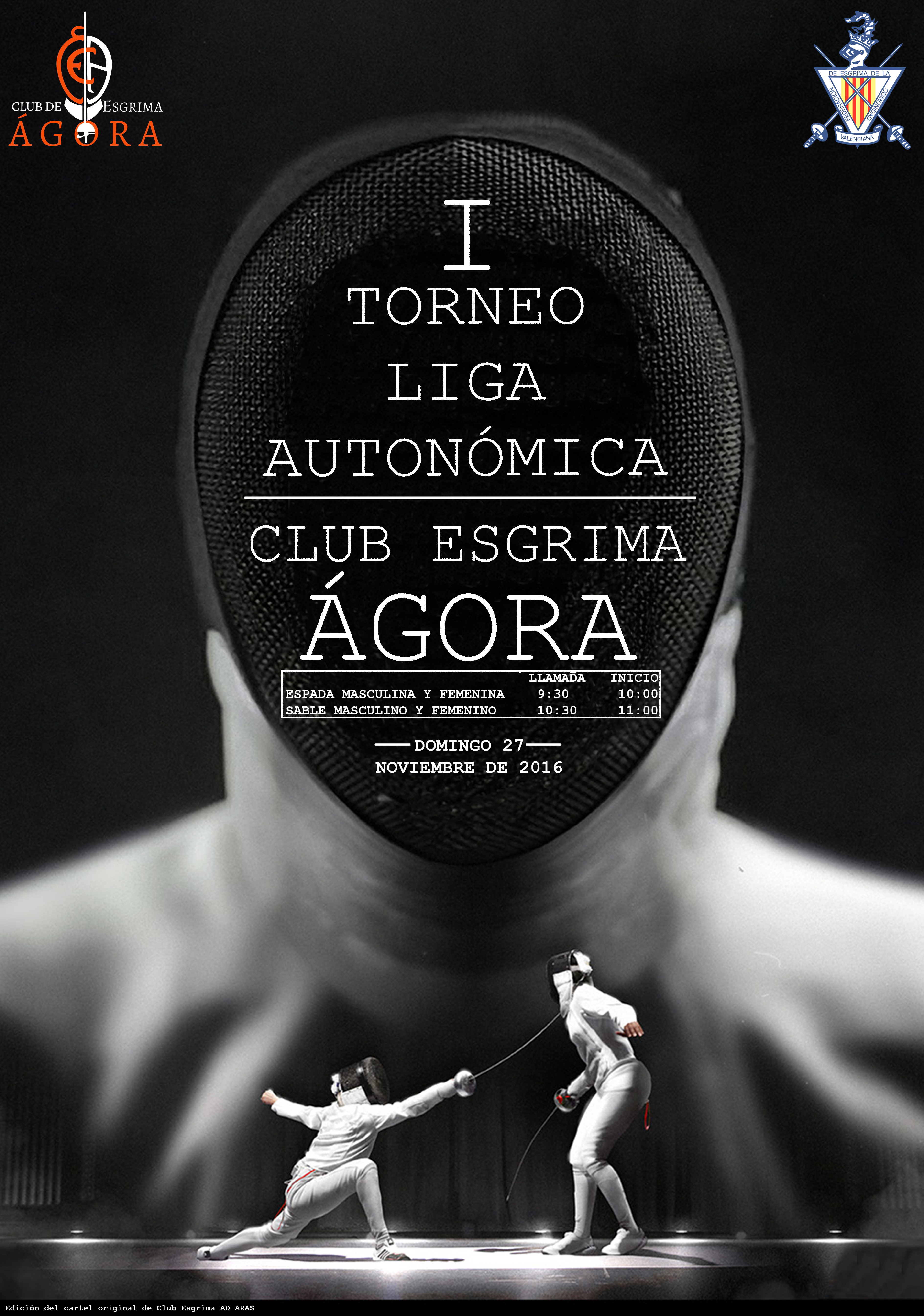 A continuación os adjuntamos la información relativa al I Torneo de Liga Autonómica, organizado por el club de Esgrima Agora, que se celebrará el próximo Domingo 27 de Noviembre en las Instalaciones del Polideportivo Benimaclet (C/ Daniel Balaciart sn).