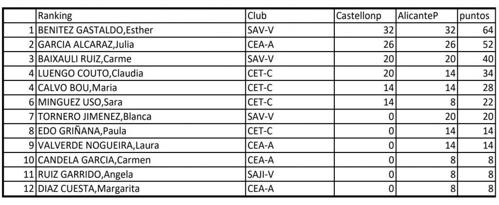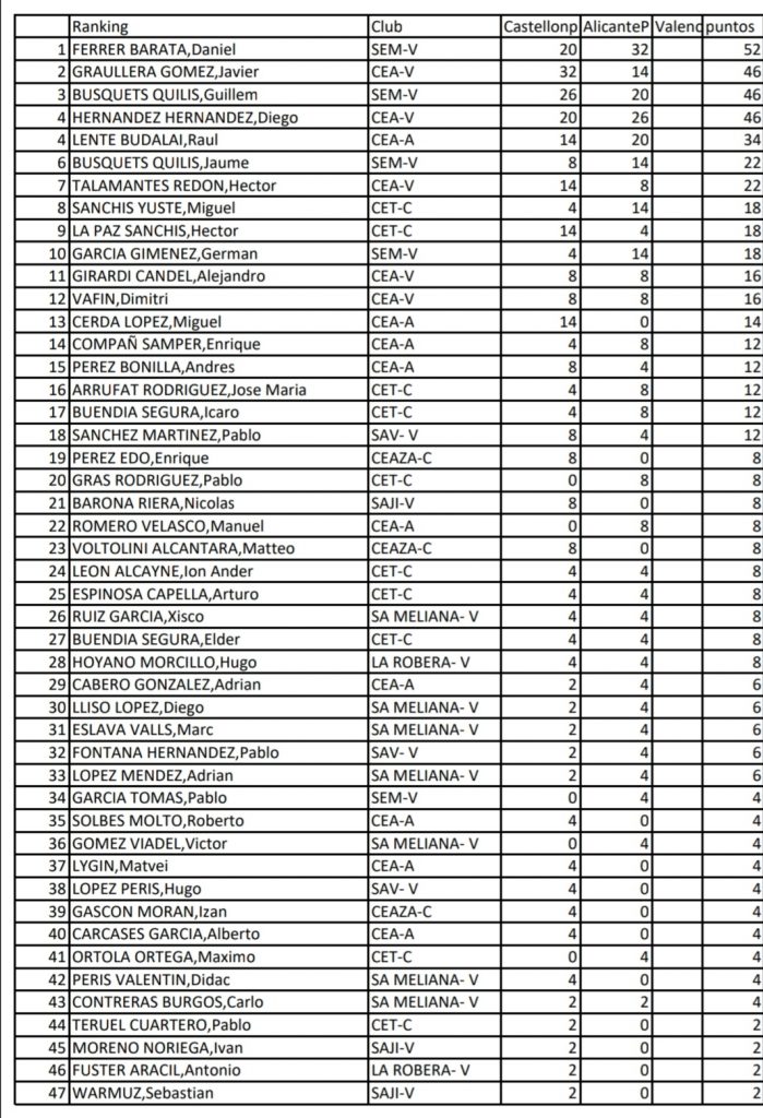 Ranking | Castellon p | Alicante P | Valencia P | puntos | ||