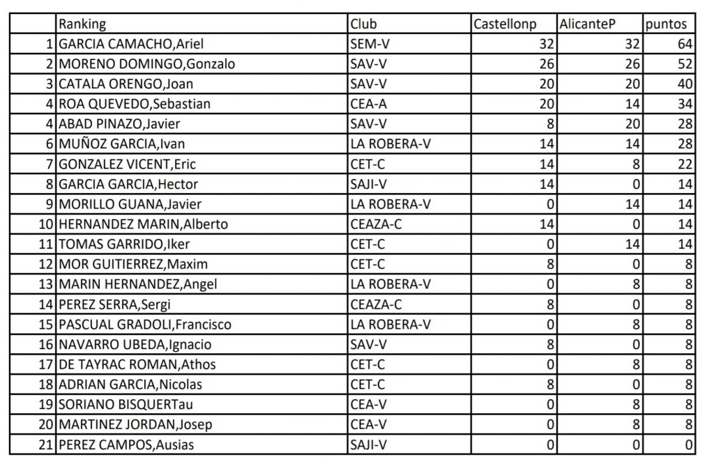 15 | DE JUAN GALAN,Adrian | XATIVA | 8 | 0 | 8 |