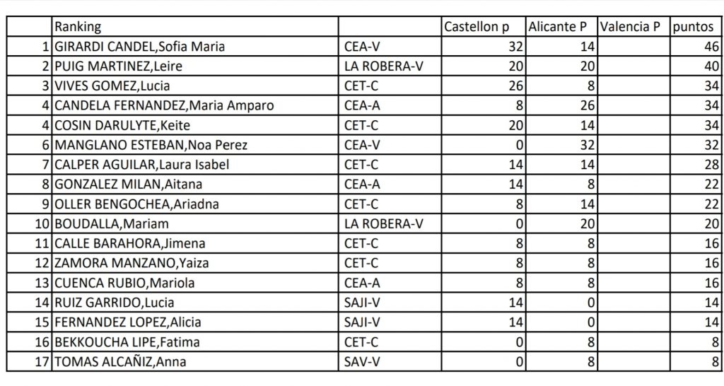 11 | ROSANU,Alvaro | XATIVA | 0 | 14 | 14 | |